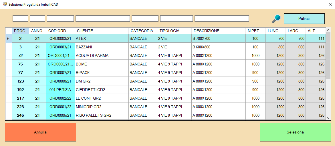 – Da IMBALLICAD selezionando i progetti/commesse presenti in Imballicad