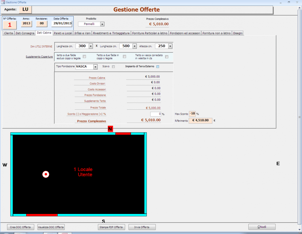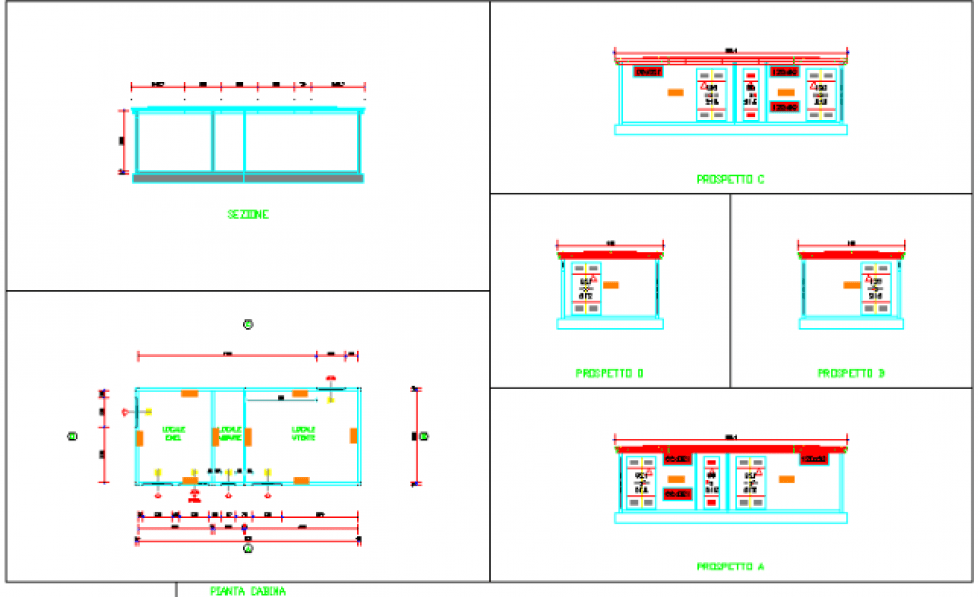 Il software Cabine permette di progettare in modo parametrico una cabina elettrica con tutti i suoi elementi costruttivi, con gli accessori di servizio e di derivare automaticamente i disegni prospettici, esecutivi e distinta e note di lavorazione. Il programma si sviluppa secondo tre fasi distinte: