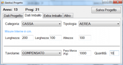 Il programma per gli imballaggi industriali consente di gestire: