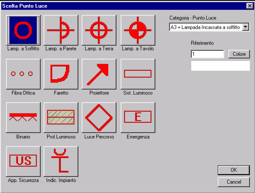 I punti luce sono selezionabili da un archivio personalizzabile dall’utente attraverso facili comandi.